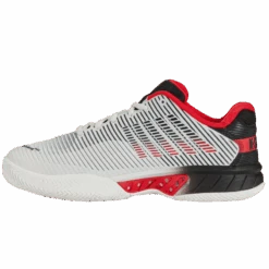 La chaussure femme K-Swiss Hypercourt Express 2 toutes surfaces blanche, avec une coupe régulière, possède une tige en synthétique et en mesh pour plus de légèreté et de soutien sur les courts. Dotée des derniers matériaux et dernières technologie K-Swiss, la chaussure Hypercourt Express 2 maintient le pied au sec grâce à l’effet déperlant de la tige. Respirabilité et ventilation de la chaussure assuré avec la combinaison de la languette et des panneaux en maille de la tige.